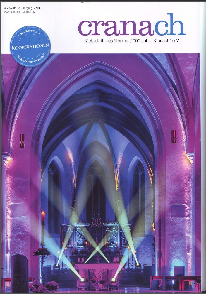 Ende November/Anfang Dezember ist ein Besuch (per Bahn) der Cranach-Ausstellung im Germanischen Nationalmuseum Nürnberg geplant. Wir laden dazu über die Presse und AVP ein. Bitte achten Sie auf diese Veröffentlichungen bzw. unsere Webseite. Viel Spaß bei der Lektüre der neuen Ausgabe unserer Zeitschrift. Mit freundlichen Grüßen Manfred Raum, 1. Vorsitzender