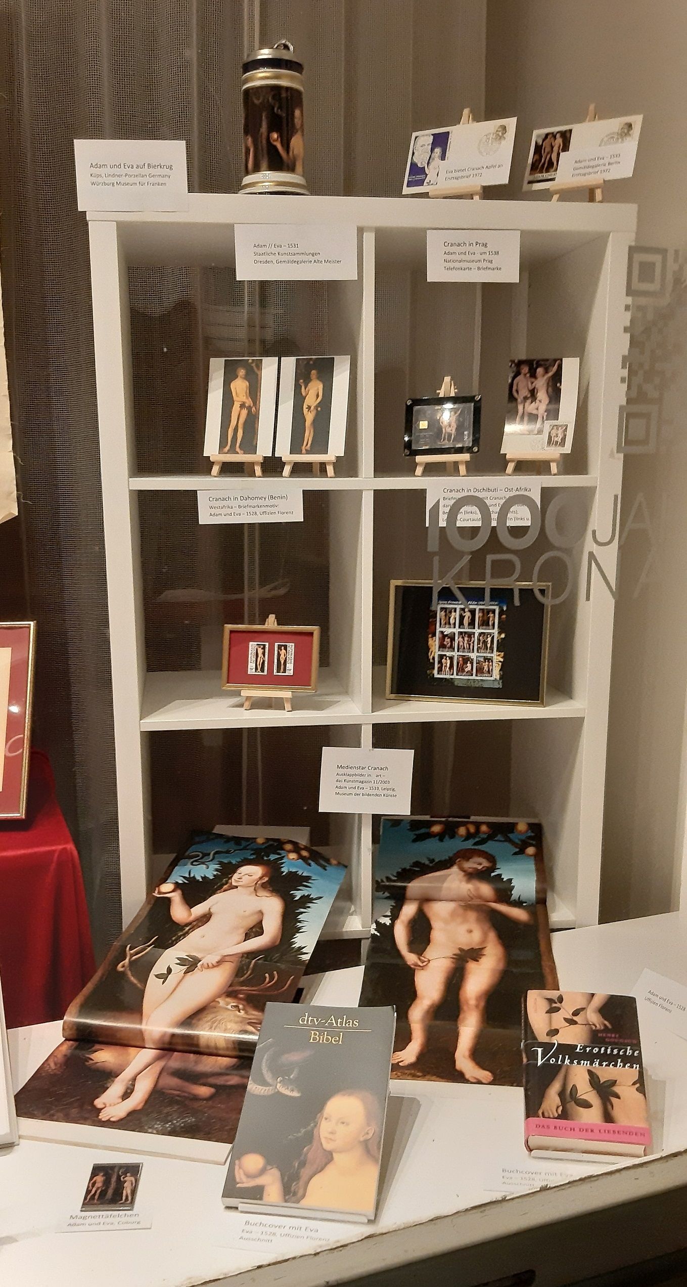 Die Cranach-Welten-Auswahl im Schaufenster soll Spaß machen und ermuntern zur Beschäftigung mit dem zeitlosen Werk des alten Kronachers, der nichts an Ausstrahlungskraft eingebüßt hat.